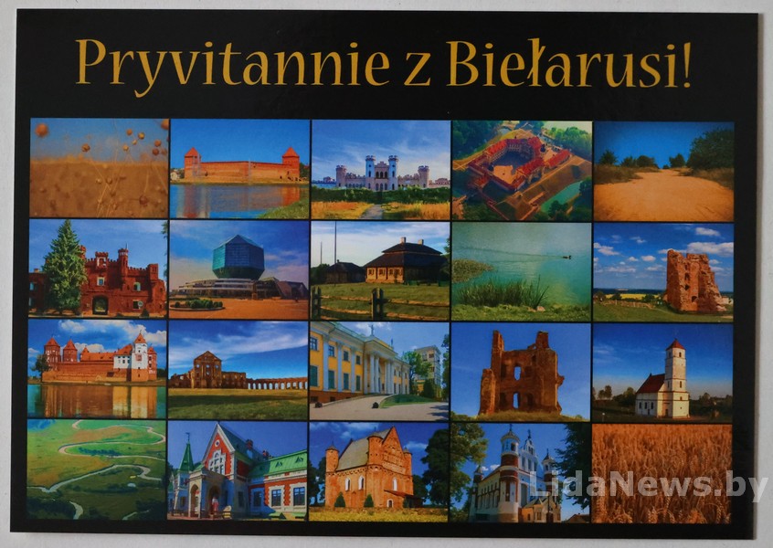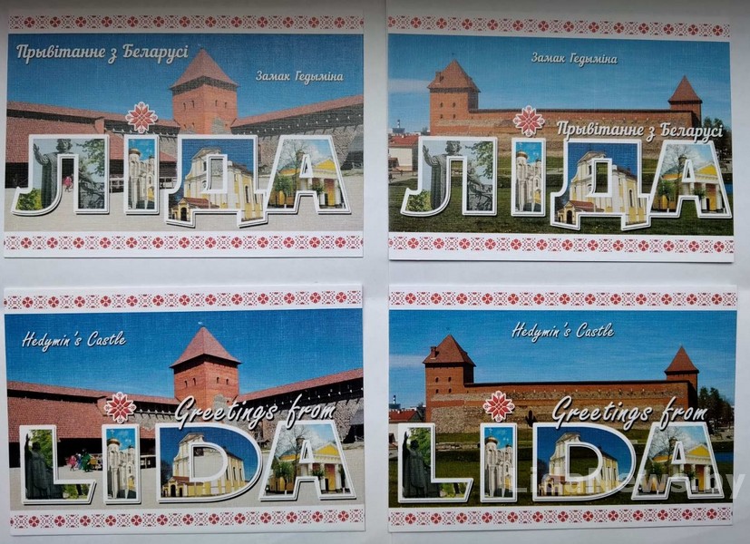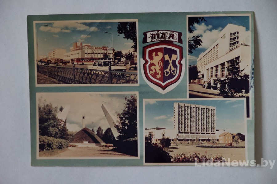 – А вот открытка с хорошо известными лидчанам архитектурными объектами нашего города, но карточка больше напоминает цветную советскую фотографию, на обратной стороне даже шаблона под заполнение адреса нет…