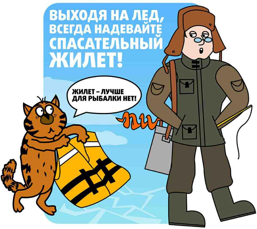 Необходимо правильно экипироваться, отправляясь на зимнюю рыбалку. Возьмите с собой хотя бы минимальный набор спасательных средств: веревку, палку, спасательный жилет, «кошки» для того, чтобы выбраться.
