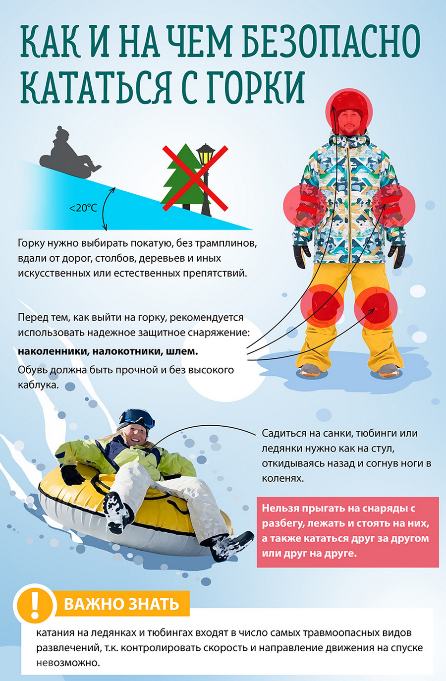 - Кататься на «санках-ватрушках» следует сидя.