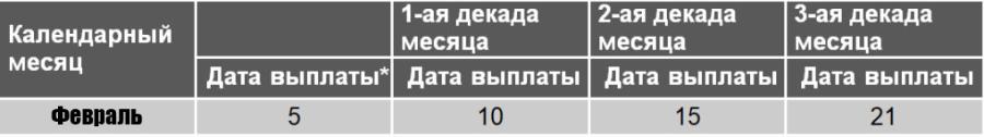 При совпадении определенных графиком сроков выплаты пенсий и пособий с выходными днями, государственными праздниками, праздничными днями, установленными и объявленными Президентом Республики Беларусь нерабочими, выплата пенсий и пособий производится досрочно, но не более чем за два рабочих дня до наступления сроков, предусмотренных настоящим графиком.