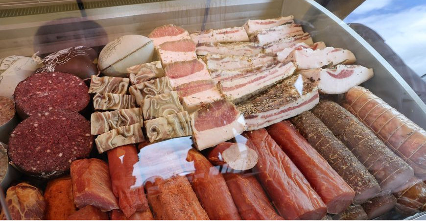 В мясном павильоне оживленно. Длинные праздники закончились, а кушать хочется всегда. Цены, кстати, тоже словно заморозились. Сало в зависимости от толщины и мясной прослойки можно купить по совершенно разной цене: если кусочки чисто белого продукта продают по 7 рублей, то потолще, с прослойкой, – по 12–14. Бочок с прослойкой для жарки стоит 15-16 рублей, а толстое, как на ладонь, с прослойкой для засолки – все 20–22 рубля. Кусочки сала с ребрами стоят 15-16 рублей. Шейную часть предлагают по 19, полендвицу – по 20–23 рубля, кумпяк – по 13-14, лопатку – по 12-13. Мясные обрезки на гуляш или фарш выставлены по 10 рублей, голень – по 6 за кило.