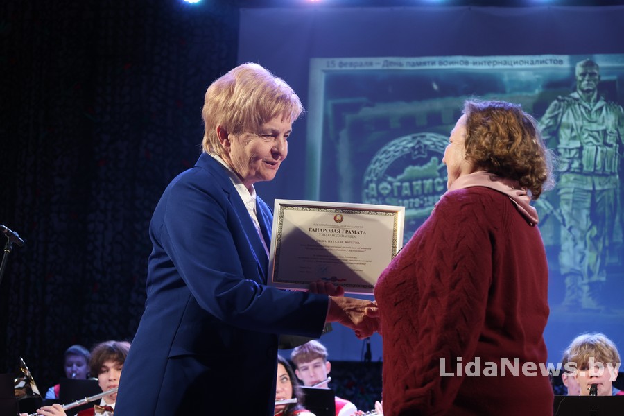 В рамках программы состоялась церемония награждения воинов-интернационалистов. Почетными грамотами Лидского районного Совета депутатов и Лидского райисполкома за активную общественную деятельность, личный вклад в военно-патриотическое воспитание молодежи и в связи с Днем памяти воинов-интернационалистов были награждены следующие члены Лидской районной организации общественного объединения «Белорусский союз ветеранов войны в Афганистане»: Раиса Железная, Наталья Зазноба, Надежда Мурашка, Галина Савушкина.