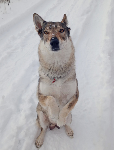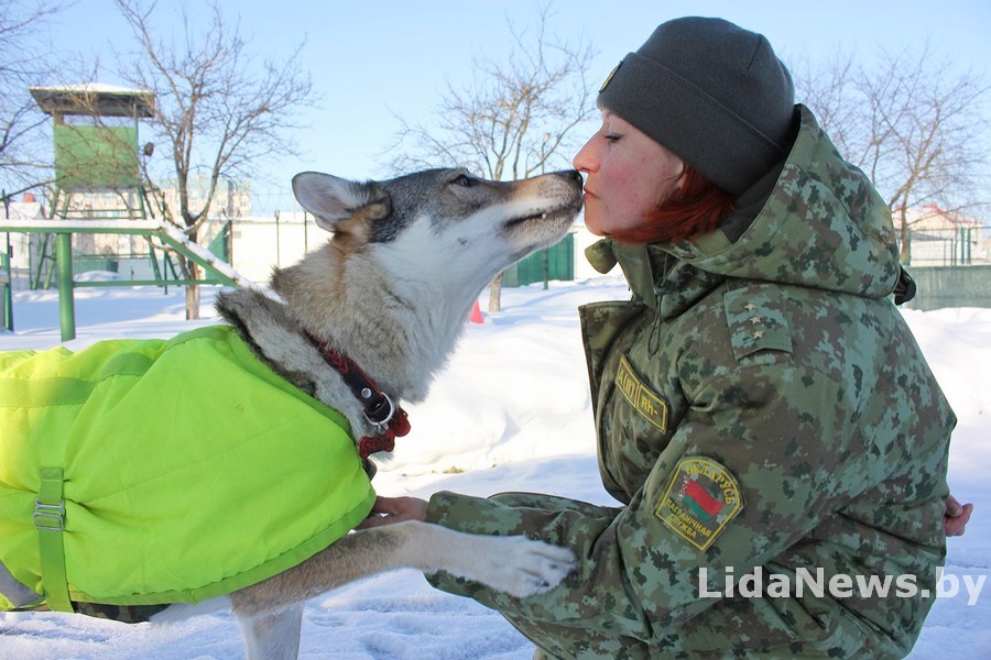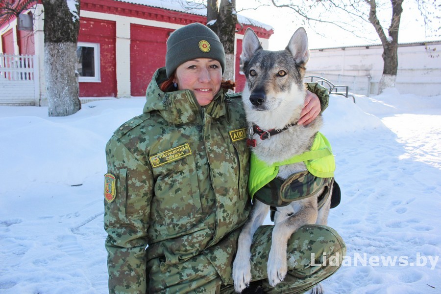 Когда пришла пора фотографироваться, Стелла позировала как профессиональная модель: то задумчиво смотрела вдаль, то давала «бусь» хозяйке и даже сделала «зайку», став на задние лапы, а передние при этом подняла и положила одна на одну.Но на службу в Лидский погранотряд Стеллу взяли, конечно же, не за умение держаться перед камерой. По сравнению с другими четвероногими сыщиками, у волчицы исключительный нюх и необычайная «чуйка». За шесть лет службы на погранзаставе «Бенякони» на ее счету не одно задержание.