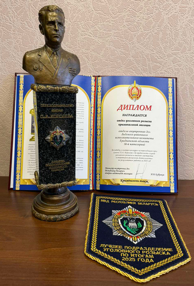 Сегодня в день профессионального праздника – Дня милиции – в отделе уголовного розыска Лидского РОВД двойной повод для гордости: по итогам 2025 года его коллектив стал победителем ежегодного республиканского смотра-конкурса на переходящий приз имени П. А. Королева «За преданность службе уголовного розыска и высокое мастерство в оперативно-розыскной деятельности», заняв 1 место в своей категории.Начальник отдела, подполковник милиции Олег Прозоров признается: «Имя легендарного сыщика, безусловно, обязывает ко многому, а переходящий приз его имени – это не столько награда за прошлые достижения, сколько аванс на будущее».