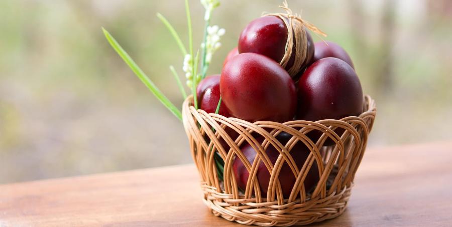 Обычай красить яйца именно в красный связан с преданием о Марии Магдалине, в руках которой белое яйцо покраснело, доказав истину ее слов о Христовом Воскресении перед императором Тиберием. Также красный – символ пролитой крови.