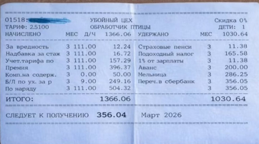 Вдумчивые пользователи быстро и грамотно «прочитали» выложенный во Всемирную паутину бухгалтерский документ и не преминули оставить свои умозаключения в комментариях под незатейливым контентом: зарплата у обработчика птицы убойного цеха очень даже неплоха. И в этом они правы.