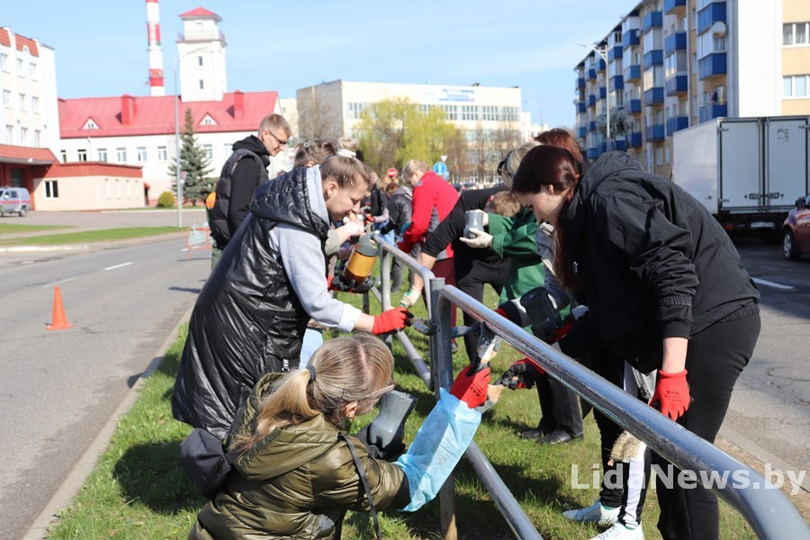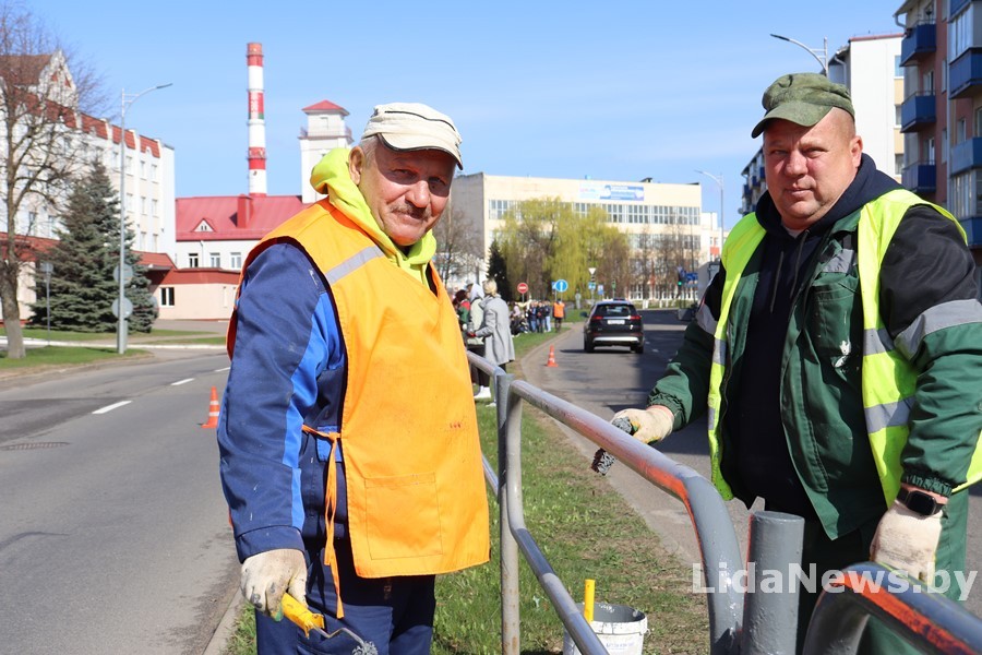 На улицах то и дело встречаются трудовые десанты. Большим коллективом вышли работники Лидского ГУП ЖКХ во главе с директором Александром Синевичем.
