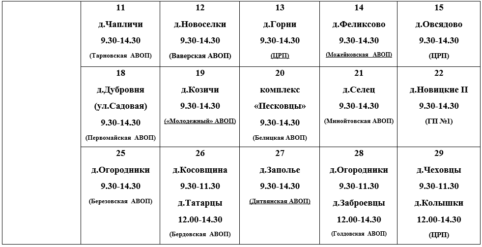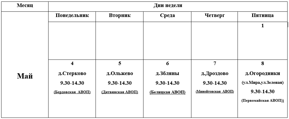 График выезда передвижного фельдшерско-акушерского пункта на май 2026 года