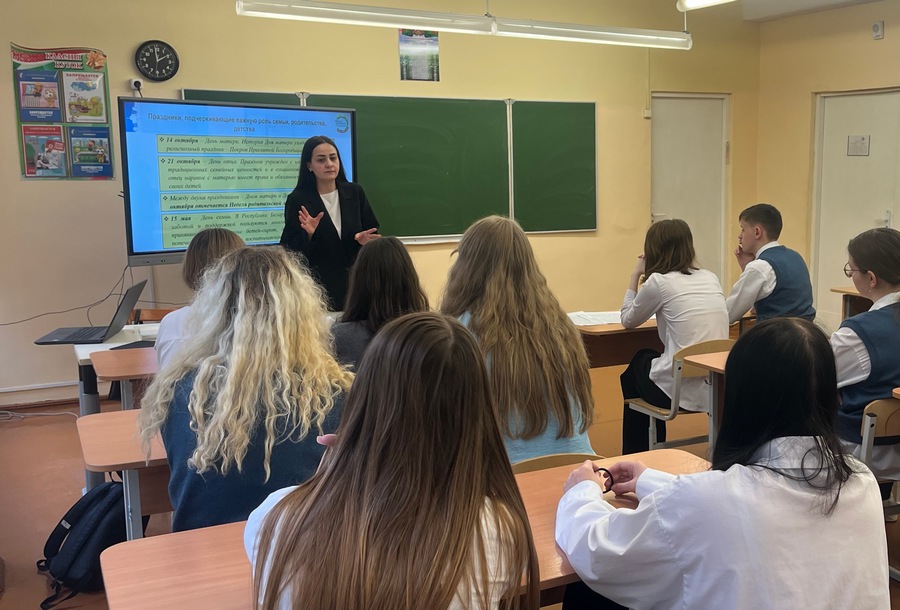 Тем же днём для учащихся 11-го класса ГУО «Средняя школа №5 г. Лиды» был проведён урок-рассуждение «Семейные ценности белорусов». Ребята высказывались о значении слова «семья», о том, как сохранить семью как ячейку общества, какие проблемы семейных ценностей существуют в современном мире, что является основной задачей нашего поколения в развитии общества, ведь сила человека – в его семье.