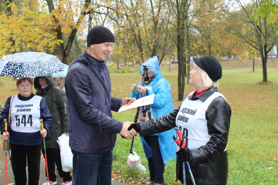 Дождь готов был отменить соревнования по скандинавской ходьбе для лидчан старшего возраста. Однако не только не сделал этого, но и, сам того желая и не желая, определил настоящих победителей – обладающих огромной силой воли и стремлением к победе. Именно такие участники собрались в сквере у Кургана Бессмертия и, отложив в сторону зонтики, стартовали с палками для скандинавской ходьбы.