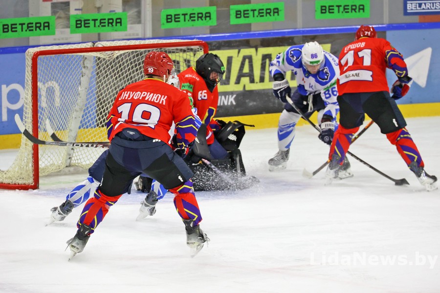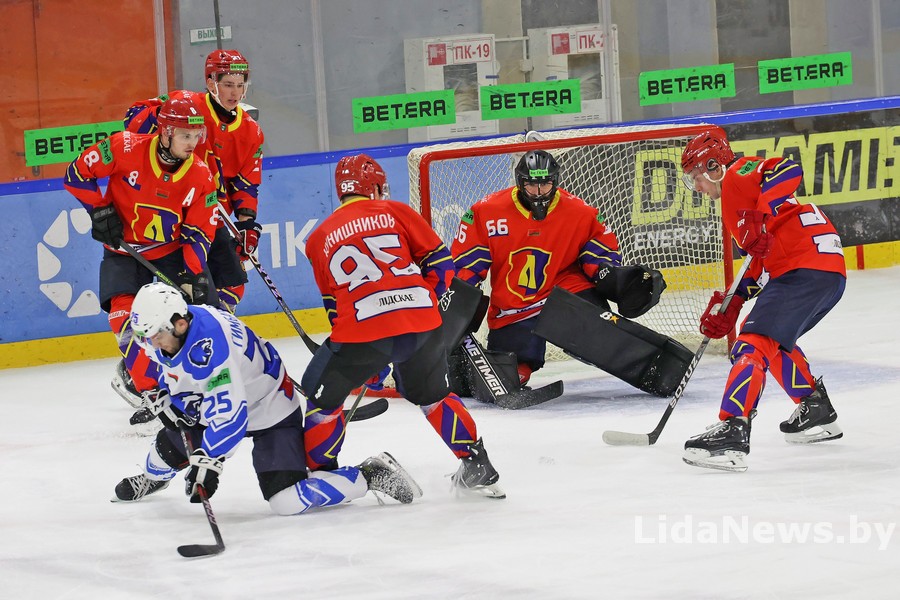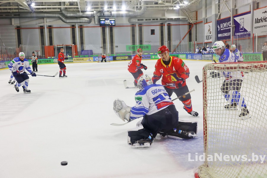 Лидчане на своем льду не оставили шансов действующему вице-чемпиону страны "Витебску" - 4:0. Дубли в составе "рыцарей" оформили Максим Кунишников и Максим Чубуков, голкипер хозяев Игорь Тяло отразил 30 бросков северян. "Лида" одержала 15-ю победу в 17 матчах сезона, с тридцатью очками команда делит с "Юностью" первое место в турнирной таблице.
