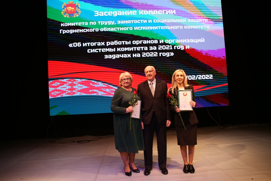 По итогам соревнования за достижение наилучших результатов выполнения основных показателей развития социально-трудовой сферы за 2021 год победителями признаны Слонимский, Ивьевский, Гродненский и Кореличский районы. Около шестидесяти работников сферы труда и социальной защиты были награждены Почетными грамотами, дипломами, благодарностями за добросовестный труд в системе социальной защиты.