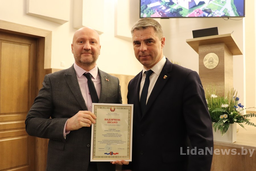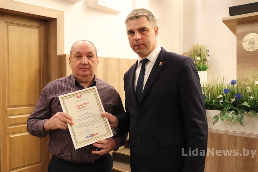 На планерке в начале текущей недели продолжился цикл награждения Благодарственными письмами председателя райисполкома и председателя районного Совета депутатов сотрудников организаций и предприятий Лидчины, которые активно участвовали в ходе организации и проведения в Лиде республиканского общественно-политического проекта «Марафон единства».