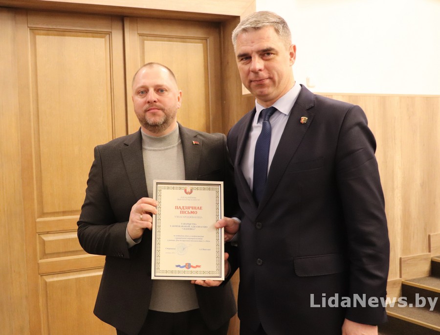 Особое внимание было уделено успешному проведению в Лиде в уходящем году Дня белорусской письменности – события республиканского масштаба. Глава района отметил, что праздник получил положительные отзывы гостей и оставил яркие воспоминания. Этот результат стал возможен благодаря слаженной работе многих предприятий, организаций и тысяч лидчан. Труд наиболее отличившихся был отмечен районной властью высокими наградами.
