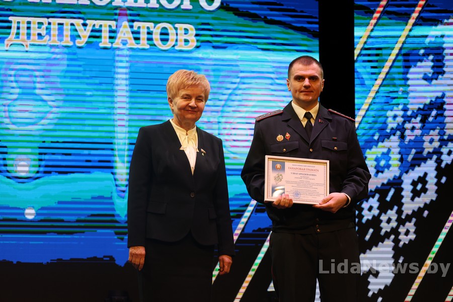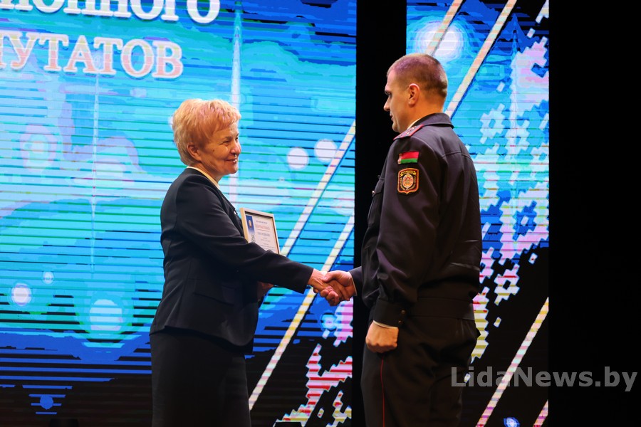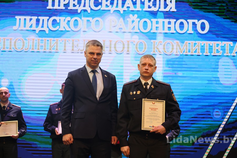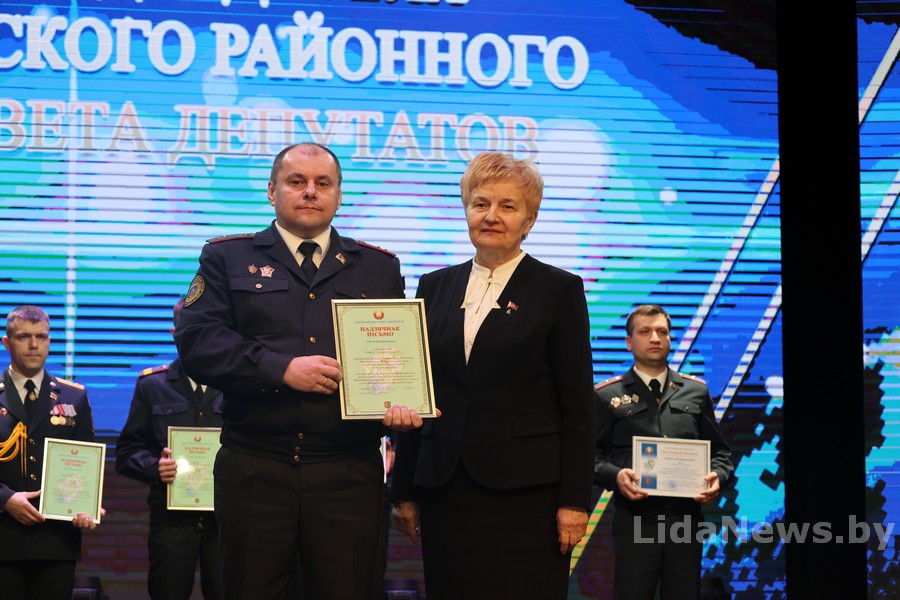Благодарственными письмами председателя Лидского районного Совета депутатов Инесса Белуш наградила: младшего лейтенанта милиции, участкового инспектора милиции отдела охраны правопорядка и профилактики милиции общественной безопасности отдела внутренних дел Лидского райисполкома Дмитрия Слесаря; старшего сержанта милиции, милиционера первой группы второго взвода роты патрульно-постовой службы милиции общественной безопасности отдела внутренних дел Лидского райисполкома Дениса Нестерова.