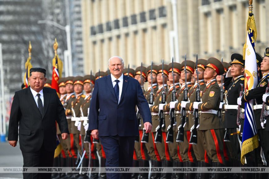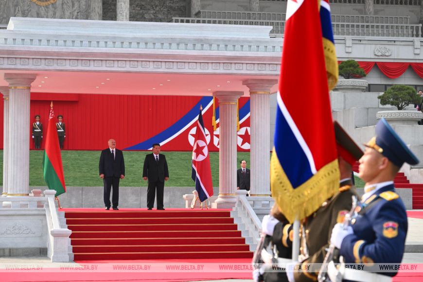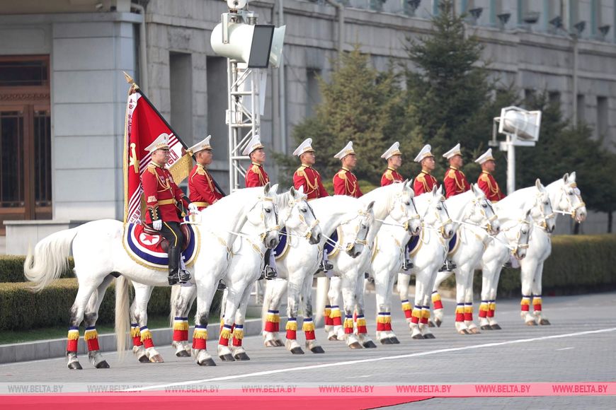 Гимны, залпы орудий и конница. Церемония официальной встречи Александра Лукашенко и Ким Чен Ына прошла в Пхеньяне