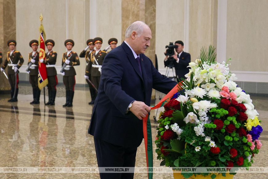 Сразу по прибытии в Пхеньян глава белорусского государства также посетил Кымсусанский дворец Солнца и почтил память руководителей КНДР Ким Ир Сена и Ким Чен Ира.