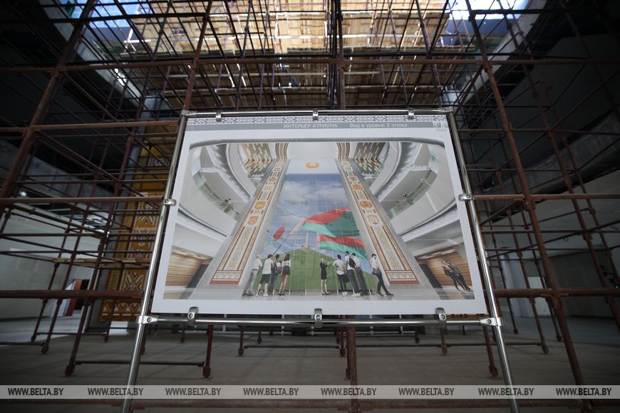 Речь также шла о сроках завершения всех работ и возможном открытии музея к знаковой для Беларуси дате 17 сентября - Дню народного единства. Работы по фасаду здания - остекление и кровельные работы - фактически полностью завершены. На завершающих стадиях находится первая очередь обустройства парка Народного единства. К августу планируется завершить все работы. В мае планируют ввести в эксплуатацию подземный переход к музею. После краткого доклада главе государства предложили ознакомиться с залами строящегося Национального исторического музея. Президенту подробно рассказали о внутреннем убранстве музея и размещении будущих экспозиций. При этом авторы проекта планируют использовать самые современные подходы, которые позволят более полно погрузиться в важнейшие события белорусской истории.